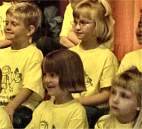 The kids came in, one row at a time, and for their first song they sang "Growing up is a Big Job" I tried to get a good shot of Emily but she was always looking at the other kids and not at me or anyone else in the audience. I got her attention once or twice but she was too quick to turn her head away to get a good shot. I think she is a little shy when she is before a crowd, but at least she sang the songs and knew the actions. The kids really did a good job considering that some of them had to come back to school because they were off track.